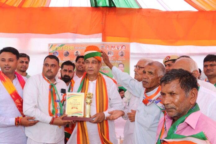 भाजपा प्रदेश अध्यक्ष मोहन लाल बड़ौली ने राई हलके के ताजपुर और जैनपुर गांव में किया ध्वजारोहण