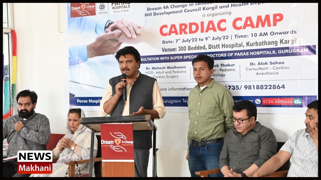 KARGIL, JULY 08, 2022 :- Chairman and Chief Executive Councillor (CEC), LAHDC, Kargil Feroz Ahmad Khan today inaugurated a Cardiac Camp organized by Paras Hospital Gurugram, in association with Dream 4A Change in collaboration with LAHDC, Kargil and Health Department Kargil at 300 bedded District Hospital Kurbathang, Kargil.