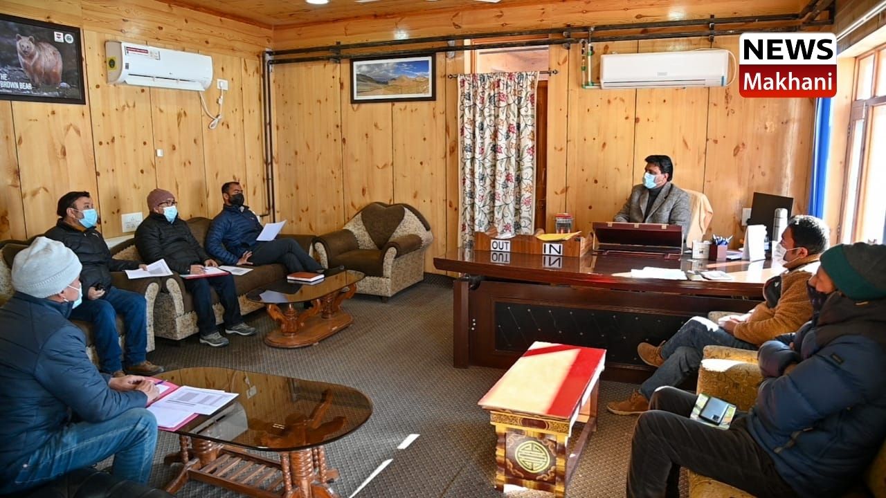 Chairman and Chief Executive Councillor (CEC) LAHDC, Kargil, Feroz Ahmed Khan today chaired a meeting of district officers at Council Secretariat to review the COVID-19 situation in Kargil district.