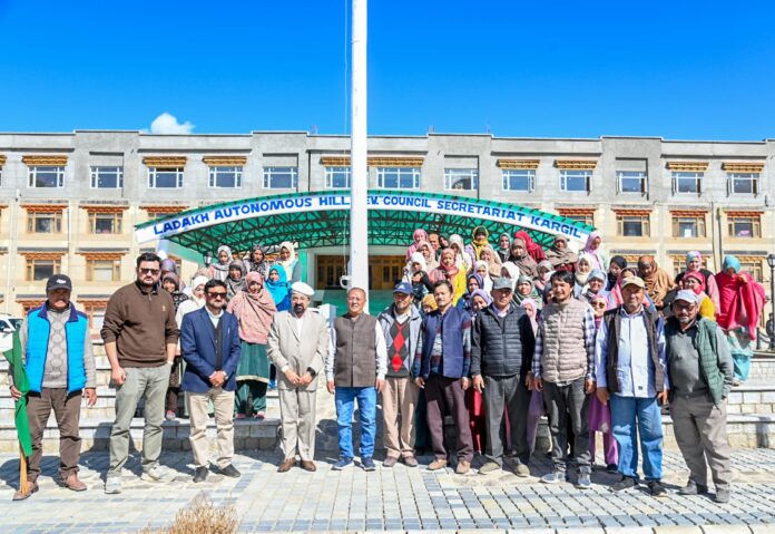 The Hon’ble Chief Executive Councillor (CEC), LAHDC Kargil, Dr. Mohd Jaffer Akhoon, today flagged off a training-cum-exposure visit of farmers to Jammu and Kashmir, organized by the Department of Horticulture, Kargil under the Mission for Integrated Development of Horticulture (MIDH) 2025–26.