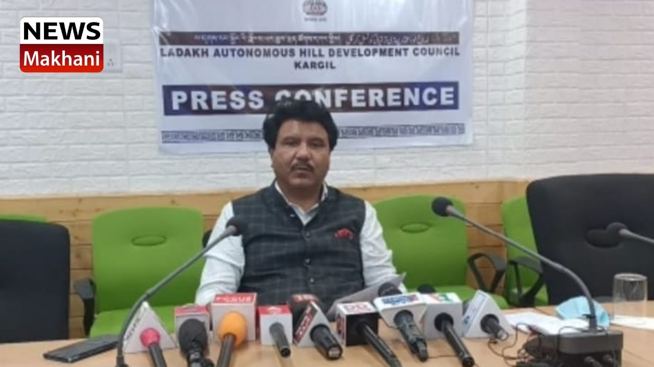KARGIL, JULY 13, 2021: Chairman and Chief Executive Councilor, LAHDC, Kargil Feroz Ahmed Khan held a press conference at Council Secretariat here on Monday.