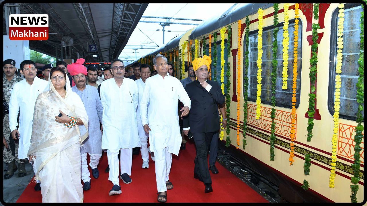 जयपुर, 08 अक्टूबर। मुख्यमंत्री श्री अशोक गहलोत ने शनिवार को गांधीनगर रेलवे स्टेशन पर पैलेस ऑन व्हील्स शाही ट्रेन को हरी झंड़ी दिखाकर रवाना किया। श्री गहलोत ने कहा कि पैलेस ऑन व्हील्स शाही रेलगाड़ी पर्यटन के क्षेत्र में दुनिया में एक मिसाल है। पिछले 40 वर्षों से चल रही इस ट्रेन का 2 वर्षों के अन्तराल के बाद पुनः प्रारम्भ होना एक शुभ संकेत है। यह इंगित करता है कि आने वाले दिनों में प्रदेश में पर्यटन क्षेत्र और मजबूती के साथ उभरेगा।