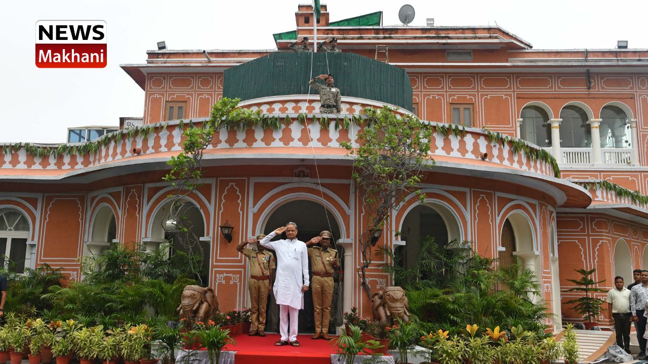 जयपुर, 15 अगस्त। मुख्यमंत्री श्री अशोक गहलोत ने स्वतंत्रता दिवस पर सोमवार को प्रातः सात बजे 8, सिविल लाइंस स्थित मुख्यमंत्री निवास पर ध्वजारोहण किया। इस अवसर पर मुख्यमंत्री कार्यालय, मुख्यमंत्री निवास के अधिकारी एवं सुरक्षाकर्मी भी उपस्थित थे।