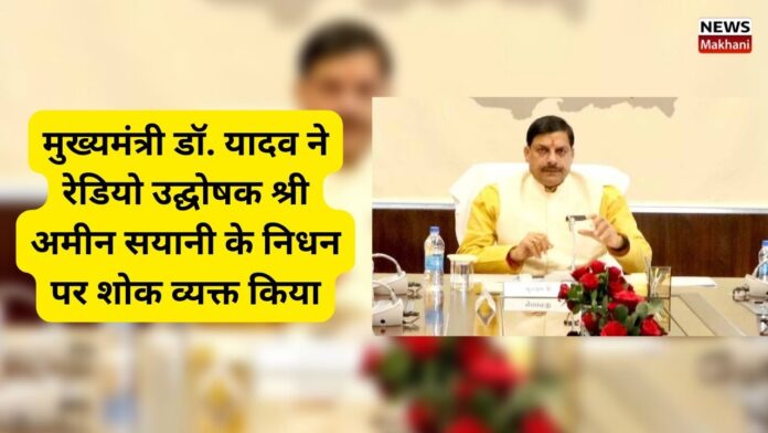 मुख्यमंत्री डॉ. मोहन यादव ने सुप्रसिद्ध रेडियो उद्घोषक श्री अमीन सयानी के अवसान पर शोक व्यक्त किया है। मुख्यमंत्री डॉ. यादव ने कहा कि देश में रेडियो कार्यक्रमों को लोकप्रिय बनाने में अमीन सयानी जी का महत्वपूर्ण योगदान रहा। रेडियो कार्यक्रमों के प्रस्तुतीकरण की उनकी विलक्षणता आज भी लोगों की स्मृतियों में स्थाई रूप से रची बसी है। मुख्यमंत्री डॉ.यादव ने ईश्वर से दिवंगत पुण्यात्मा को अपने श्री चरणों में स्थान देने तथा शोक संतप्त परिजनों को यह दुख सहन करने की शक्ति प्रदान करने की प्रार्थना की है।