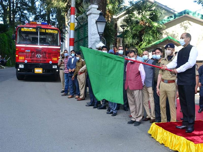 मुख्यमंत्री जय राम ठाकुर ने आज प्रदेश के विभिन्न भागों में स्थित अग्निशमन केंद्रों और उप-अग्निशमन केंद्रों के लिए अग्निशमन सेवाएं विभाग के 17 अग्निशमन वाहनों को हरी झंडी दिखाकर रवाना किया।