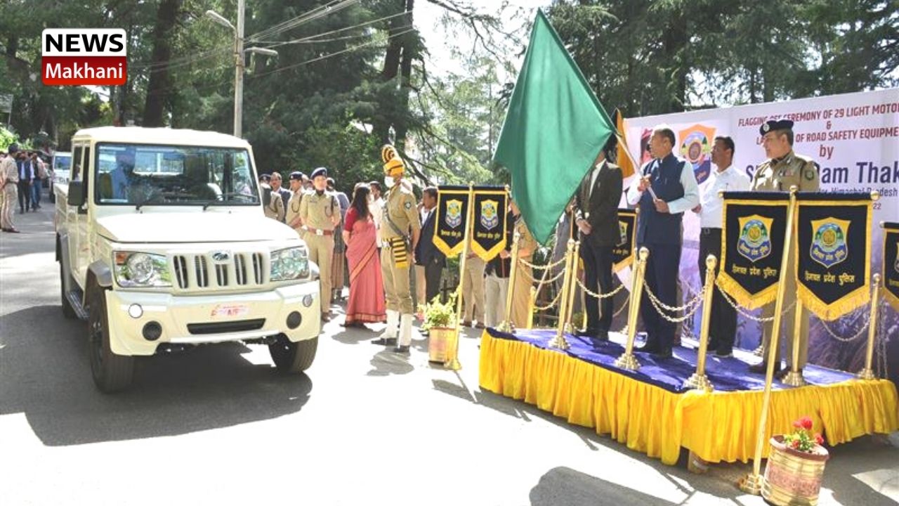 मुख्यमंत्री जय राम ठाकुर ने आज यहां ओक ओवर से राज्य पुलिस विभाग के 29 वाहनों को हरी झंडी दिखाकर रवाना किया। उन्होंने पुलिस विभाग के 40 लेजर स्पीड मीटर कैमरा, 124 बॉडी वॉर्न कैमरा व 129 लाइट बैटन भी लॉन्च किए।