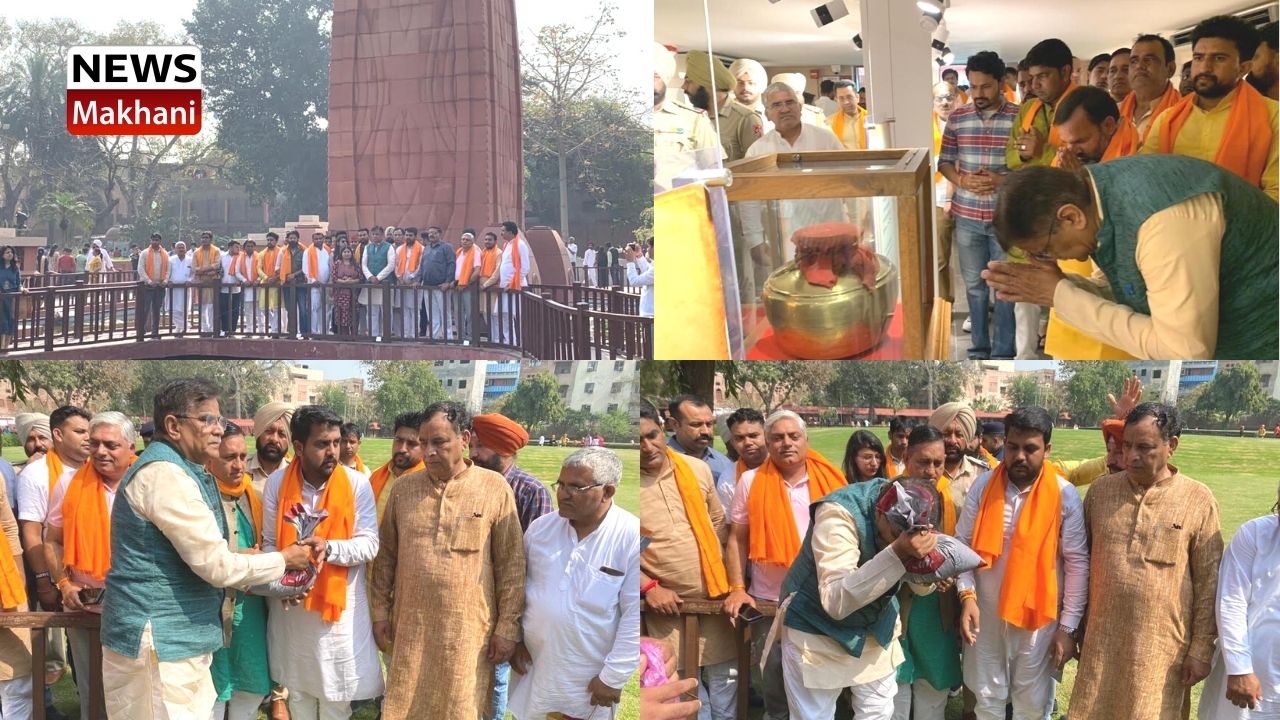 भारतीय जनता पार्टी हरियाणा के प्रदेश अध्यक्ष ओम प्रकाश धनखड़ के नेतृत्व में हरियाणा के अंबाला से शुरू हुई शहीद नमन यात्रा हुसैनीवाला, बाघा बार्डर होते हुए रविवार को जलियांवाला बाग पहुंची। यहां भारत माता की जय और शहीदों के सम्मान में जय हिंद, वंदे मातरम आदि नारों के साथ सभी ने जलियांवाला बाग की उस बलिदानी मिट्टी को माथे से लगाया, जहां अंग्रेजों की अंधाधुंध गोलीबारी में सैकड़ों भारतीय शहीद हो गए थे।