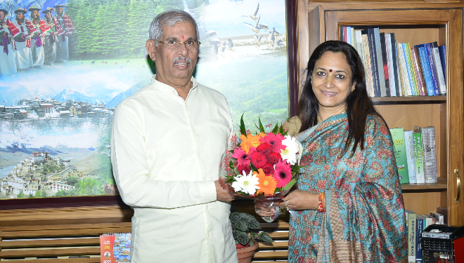 हिमाचल प्रदेश राज्य महिला आयोग की अध्यक्षा डेजी ठाकुर ने आज राजभवन में राज्यपाल राजेन्द्र विश्वनाथ आर्लेकर से भेंट की। यह एक शिष्टाचार भेंट थी।