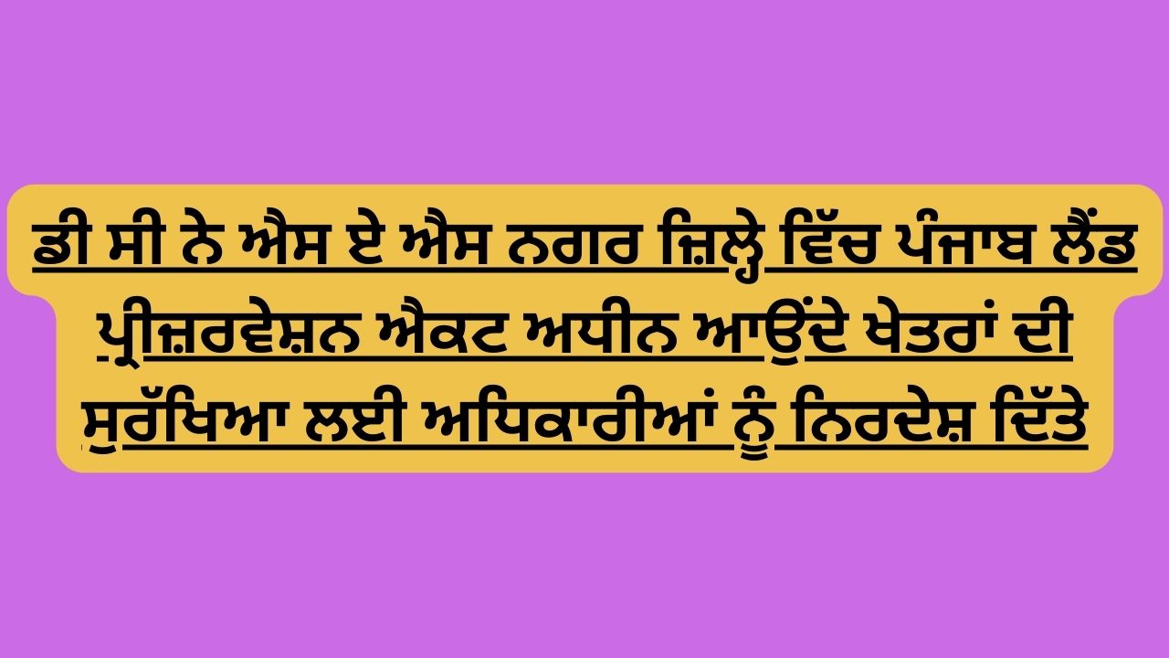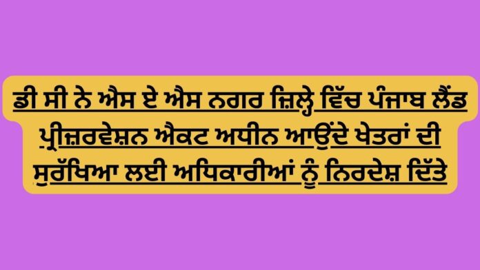 डीसी ने एसएएस नगर जिले में पंजाब भूमि संरक्षण अधिनियम के तहत आने वाले क्षेत्रों की सुरक्षा के लिए अधिकारियों को निर्देश दिए