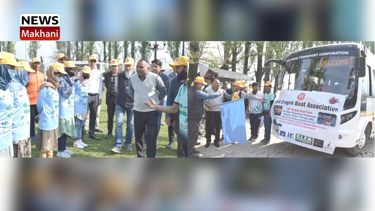 The Divisional Commissioner (Div Com) Kashmir, Pandurang K Pole today flagged-off 28 members Team of J&K Dragon Boat Association (DBA) at Zabarwan Park here, for their participation in the National Championship to be held at Alappuzha, Kerala from 8th to 10th April 2022.