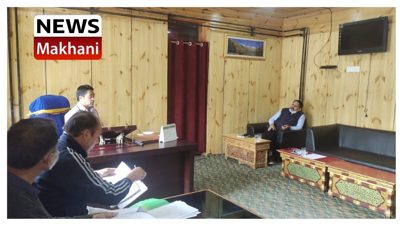 KARGIL, AUGUST 31, 2021: Executive Councilor for Agriculture and Health Mohsin Ali in presence of the Former Executive Councilor and Councilor Shargole Constituency Muhammad Ali Chandan today convened a meeting with the officers of the concerned departments to take stock of the status of developmental works in Shakar Chiktan Sub Division and Shargole Constituency under different components and schemes.