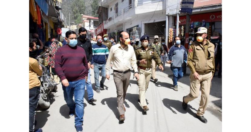 RAMBAN, MAY 19, 2021: Continuing the drive to implement Covid protocol across the district Ramban, the Enforcement teams today fined scores of violators for roaming without wearing face masks and not maintaining physical distance.