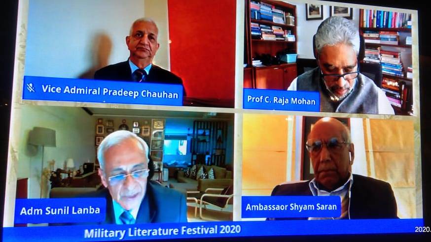 एमएलएफ 2020 के दूसरे दिन के दौरान ‘द क्वॉड: दी इमर्जिंग इंडो-पैसिफिक नेवल एलायंस’ के विषय पर वर्चुअल रूप से आयोजित एक विचार-विमर्श के दौरान हमारे पूर्व नौसेना प्रमुख एडमिरल सुनील लाम्बा (सेवानिवृत्त) सहित शीर्ष पैनलिस्टों के प्रमुख हस्तियों के समूह द्वारा विचार व्यक्त किए गए।