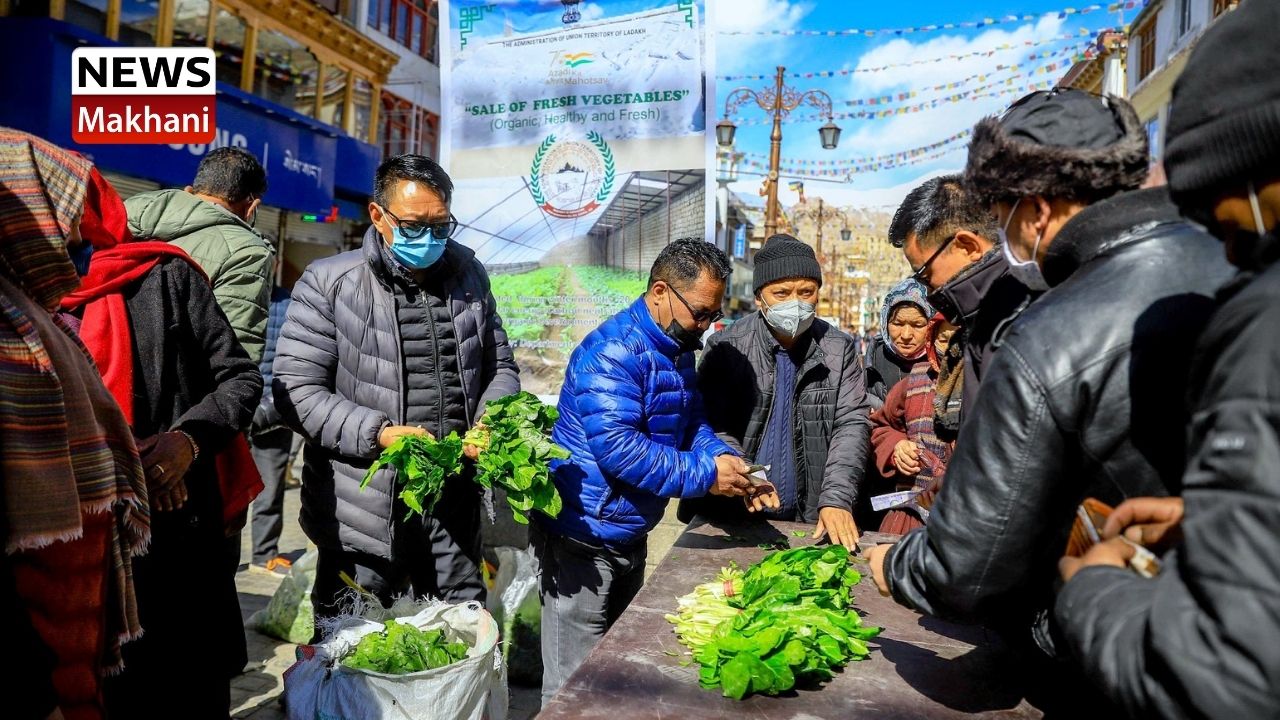 Farmers sell fresh vegetables produced in Ladakh Greenhouses