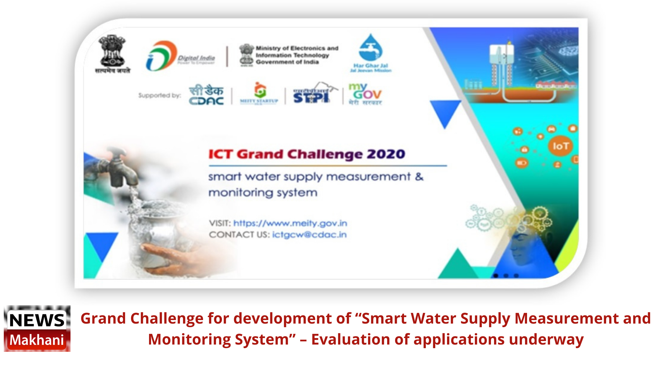 In order to harness the power of technology in water management which is the need of the hour, the Ministry of Electronics & Information Technology in partnership with National Jal Jeevan Mission, Department of Drinking Water and Sanitation, Ministry of Jal Shakti had announced an ICT Grand Challenge to develop a ‘Smart water supply measurement and monitoring system’. The Jal Jeevan Mission would be the user agent of the Grand Challenge and C-DAC, Bangalore is the implementing agency and would provide technical support for the challenge. C-DAC will also provide technical support for Proof of Concept (PoC) development to the shortlisted candidates. It would also provide mentoring support, technical guidance to them.