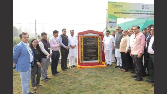 The Ministry of Textiles, in collaboration with the Synthetic & Art Silk Mills’ Research Association (SASMIRA) launched Climate Smart Agro-Textile Demonstration Center in Navsari, Gujarat, in the presence of Shri C.R. Patil, Hon’ble Minister of Jal Shakti, Government of India.