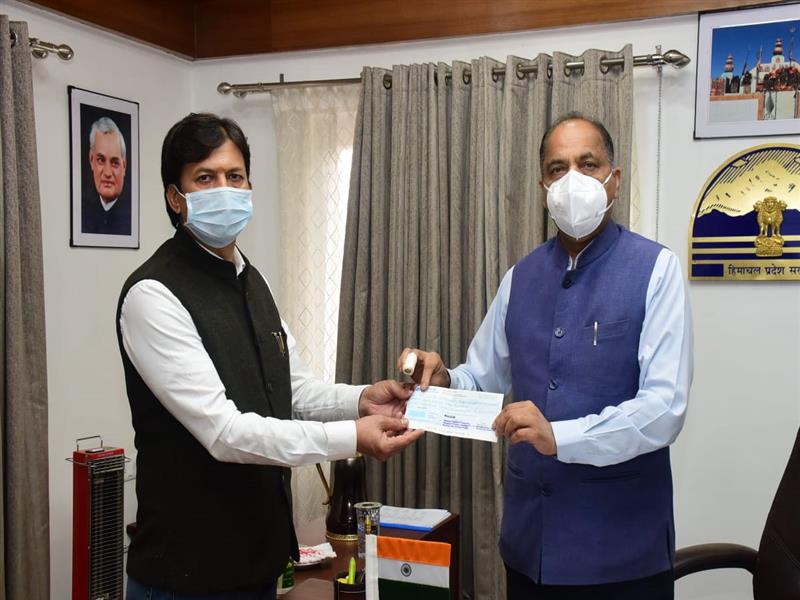 मुख्यमंत्री जय राम ठाकुर को आज यहां हिमाचल प्रदेश विश्वविद्यालय के कुलपति प्रो. सिकन्दर कुमार ने विश्वविद्यालय के शिक्षण और गैर शिक्षण कर्मचारियों की ओर से मुख्यमंत्री कोविड-19 फंड के लिए 35,40,433 रुपये का चैक भंेट किया।