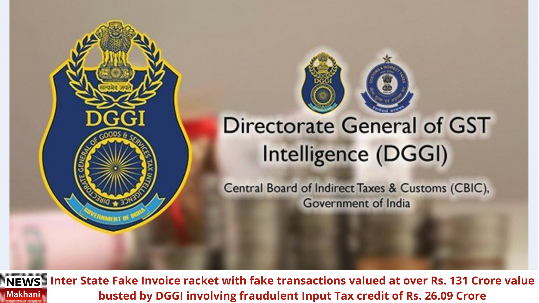 Inter State Fake Invoice racket with fake transactions valued at over Rs. 131 Crore value busted by DGGI involving fraudulent Input Tax credit of Rs. 26.09 Crore