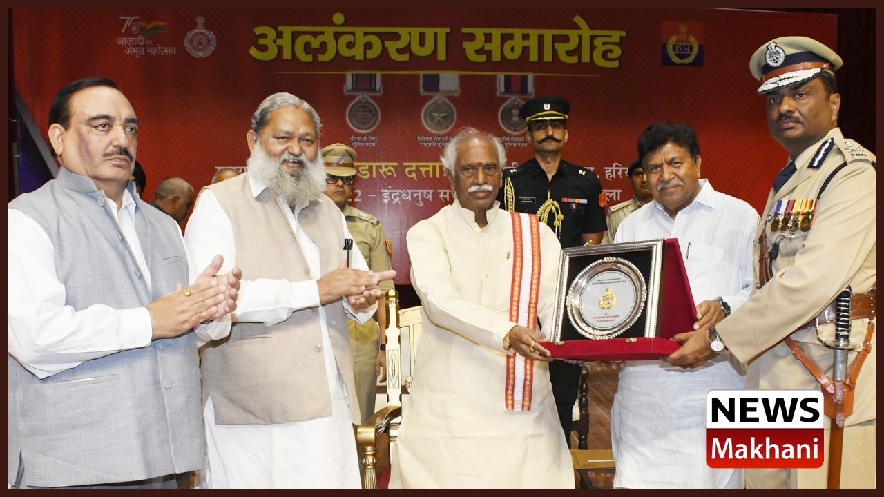 समारोह के दौरान, राज्यपाल ने हरियाणा पुलिस 11 अधिकारियों व कर्मचारियों को विशिष्ट सेवाओं के लिए राष्ट्रपति पुलिस पदक तथा के 81 अन्य को सराहनीय सेवाओं के लिए पुलिस पदक से अंलकृत किया।