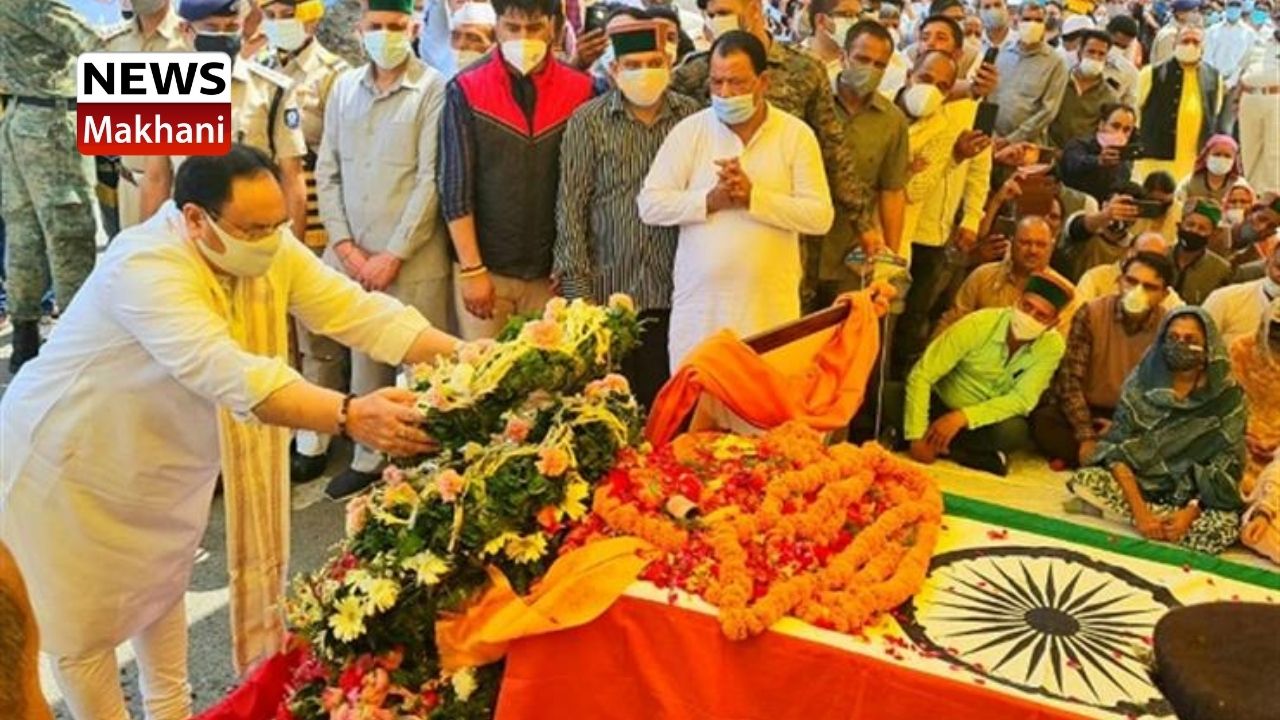 भाजपा राष्ट्रीय अध्यक्ष जे.पी. नड्डा और मुख्यमंत्री जय राम ठाकुर ने आज शिमला के रिज मैदान में पूर्व मुख्यमंत्री वीरभद्र सिंह के पार्थिव शरीर पर पुष्पांजलि अर्पित की।