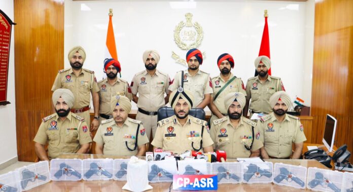 मुख्यमंत्री भगवंत सिंह मान के निर्देशानुसार पंजाब को सुरक्षित राज्य बनाने के लिए चलाए जा रहे अभियान के दौरान बड़ी सफलता हासिल करते हुए अमृतसर कमिश्नरेट पुलिस ने एक नाबालिग समेत पाँच गुर्गों को 12 आधुनिक .30 बोर पिस्तौलों और 1.5 किलोग्राम हेरोइन के साथ गिरफ्तार कर पाकिस्तान से जुड़े सीमा पार के हथियार और नशा तस्करी नेटवर्क को ध्वस्त कर दिया है। यह जानकारी पंजाब के पुलिस महानिदेशक (डीजीपी) गौरव यादव ने आज यहाँ दी।