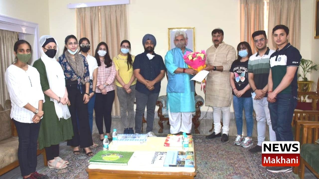 The students who met the Lt Governor included Simon Jeet Singh, Arjun Gandotra, Aryan Dubey, Muskan Mahajan, Isha Sharma, Ridhi Goja, Chandan Singh Rana, Jasleen Kour, Diksha Khanna, and Parv Atri.