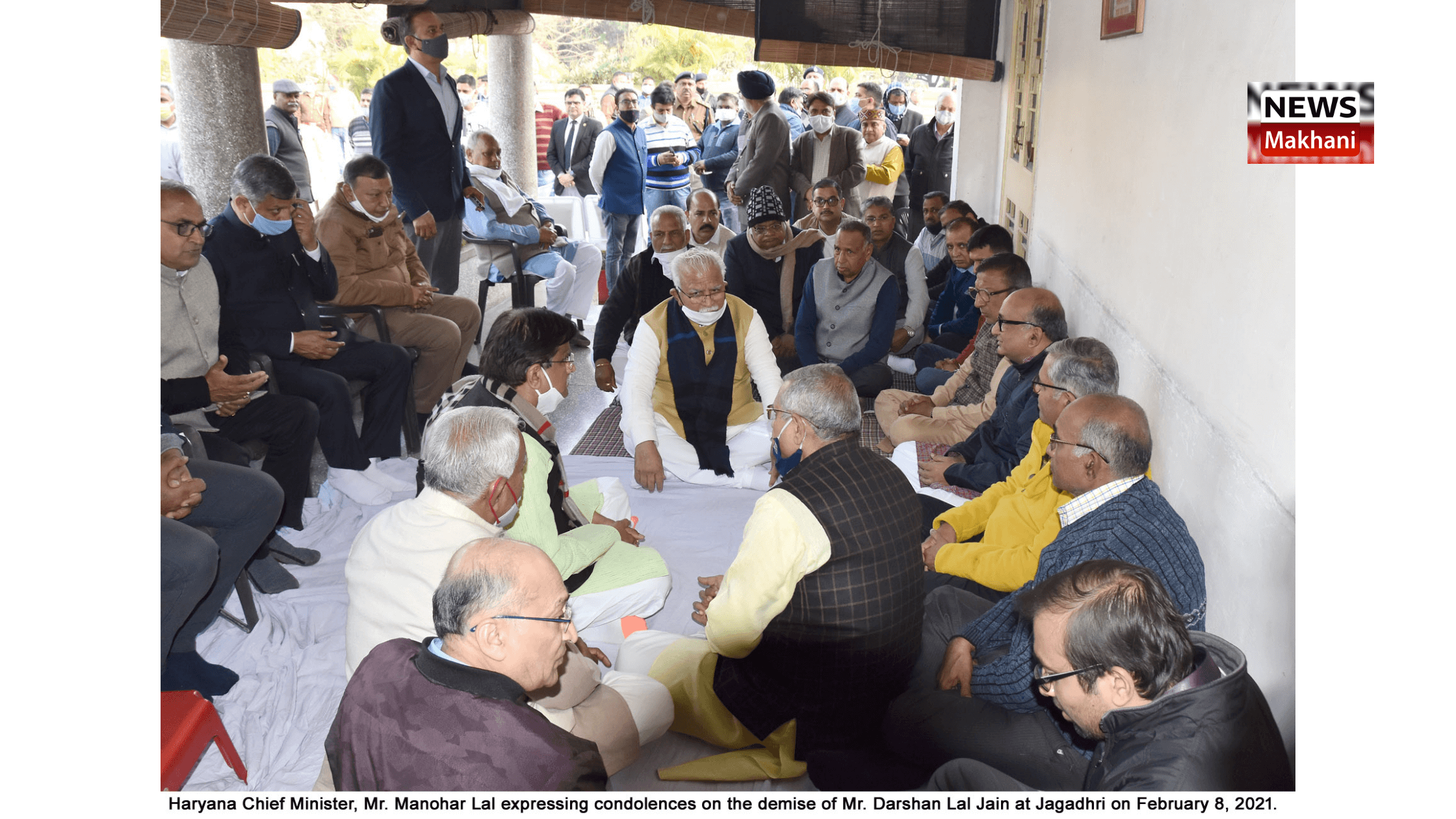 मनोहर लाल सरस्वती शोध संस्थान के संस्थापक दर्शन लाल जैन के निधन पर उनके जगाधरी निवास पर पहुंचे