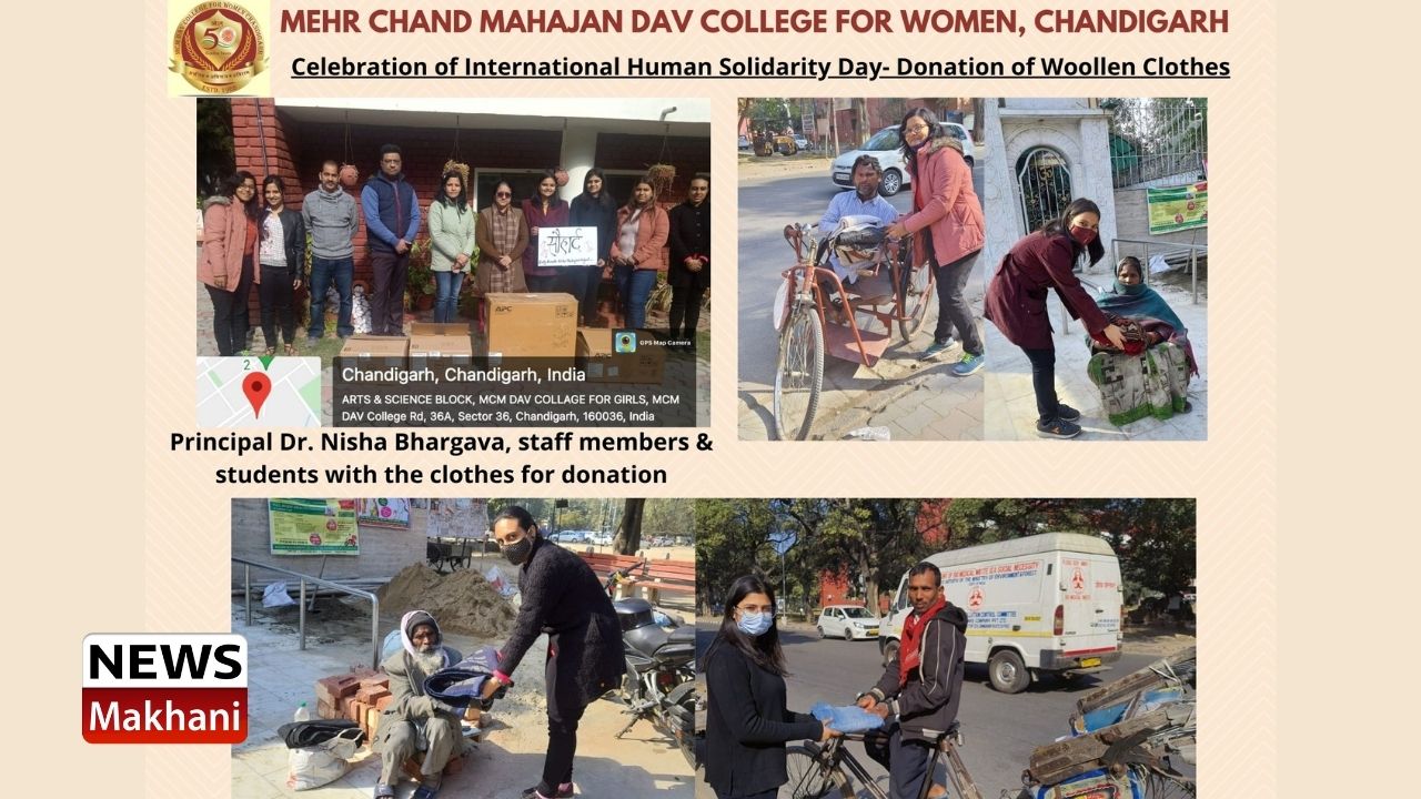 अंतर्राष्ट्रीय मानव एकता दिवस के उपलक्ष्य में, मेहर चंद महाजन डीएवी कॉलेज फॉर विमेन, चंडीगढ़ की चरित्र निर्माण समिति ने वंचित लोगों के लिए ऊनी कपड़ों के दान के लिय अभियान ‘सौहार्द’ आयोजित किया।