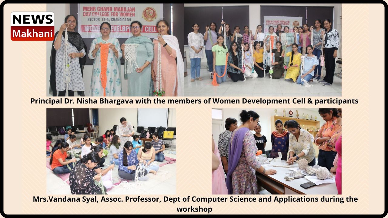 मेहर चंद महाजन डीएवी कॉलेज फॉर विमेन, चंडीगढ़ के महिला विकास प्रकोष्ठ ने ‘नॉटी नॉट्स’ शीर्षक से मैक्रो कला पर तीन दिवसीय कौशल विकास कार्यशाला का आयोजन किया। इस कार्यशाला में कॉलेज में कंप्यूटर विज्ञान और अनुप्रयोगों में एसोसिएट प्रोफेसर श्रीमती वंदना स्याल, बतौर प्रमुख वक्ता शामिल हुईं । कार्यशाला में कुल 22 विद्यार्थियों ने भाग लिया और फाइबर कला के इस बहुमुखी रूप की तकनीकों का व्यावहारिक प्रशिक्षण प्राप्त किया। प्रतिभागियों ने इसका उपयोग करते हुए कैस्केड पैटर्न से सुंदर और कलात्मक वॉल हैंगिंग और प्लांट हैंगर बनाए। प्रतिभागियों द्वारा बनाई गई अनूठी कलात्मक कृतियों की सभी ने सराहना की।