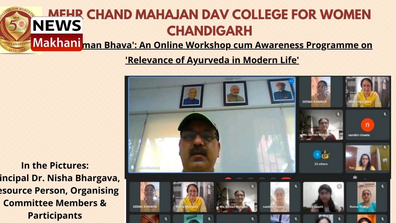 मेहर चंद महाजन डीएवी कॉलेज फॉर विमेन की चरित्र निर्माण समिति ने ‘आयुष्मान भव- जीवन शैली विकारों के विशेष संदर्भ के साथ आधुनिक जीवन में आयुर्वेद की प्रासंगिकता’ पर एक ऑनलाइन कार्यशाला व जागरूकता कार्यक्रम का आयोजन किया। इस कार्यक्रम का उद्देश्य लोगों को प्राकृतिक चिकित्सा प्रणाली यानी आयुर्वेद की समृद्ध परंपरा के बारे में जागरूक करना और उन्हें विभिन्न जीवनशैली विकारों के लिए आयुर्वेदिक उपचार के बारे में बताना था। पूरे भारत से और जॉर्डन, फिलीपींस, पाकिस्तान, घाना, बांग्लादेश, अफगानिस्तान, मस्कट ओमान, मिस्र और नाइजीरिया सहित दुनिया के विभिन्न हिस्सों से संकाय, पेशेवरों, शोध विद्वानों सहित 565 से अधिक लोगों ने कार्यशाला के लिए पंजीकरण कराया। कार्यक्रम के प्रमुख वक्ता डॉ एन एस भारद्वाज, संयुक्त निदेशक, आयुष निदेशालय, यूटी चंडीगढ़ ने मन और शरीर के स्वास्थ्य को बनाए रखने के लिए एक अनुशासित जीवन शैली के महत्व के बारे में विस्तार से बात की। उन्होंने काम, स्वास्थ्य और पढ़ाई से जुड़े तनाव को दूर करने के लिए योगाभ्यास पर जोर दिया। डॉ. भारद्वाज ने दर्शकों को दैनिक दिनचर्या में ताजे पके भोजन और फलों के सेवन के महत्व के बारे में बताया। उन्होंने मजबूत प्रतिरक्षा के लिए त्रिफला चूर्ण, अश्वगंधा चूर्ण और गिलोय की गोली का सेवन करने का सुझाव दिया।