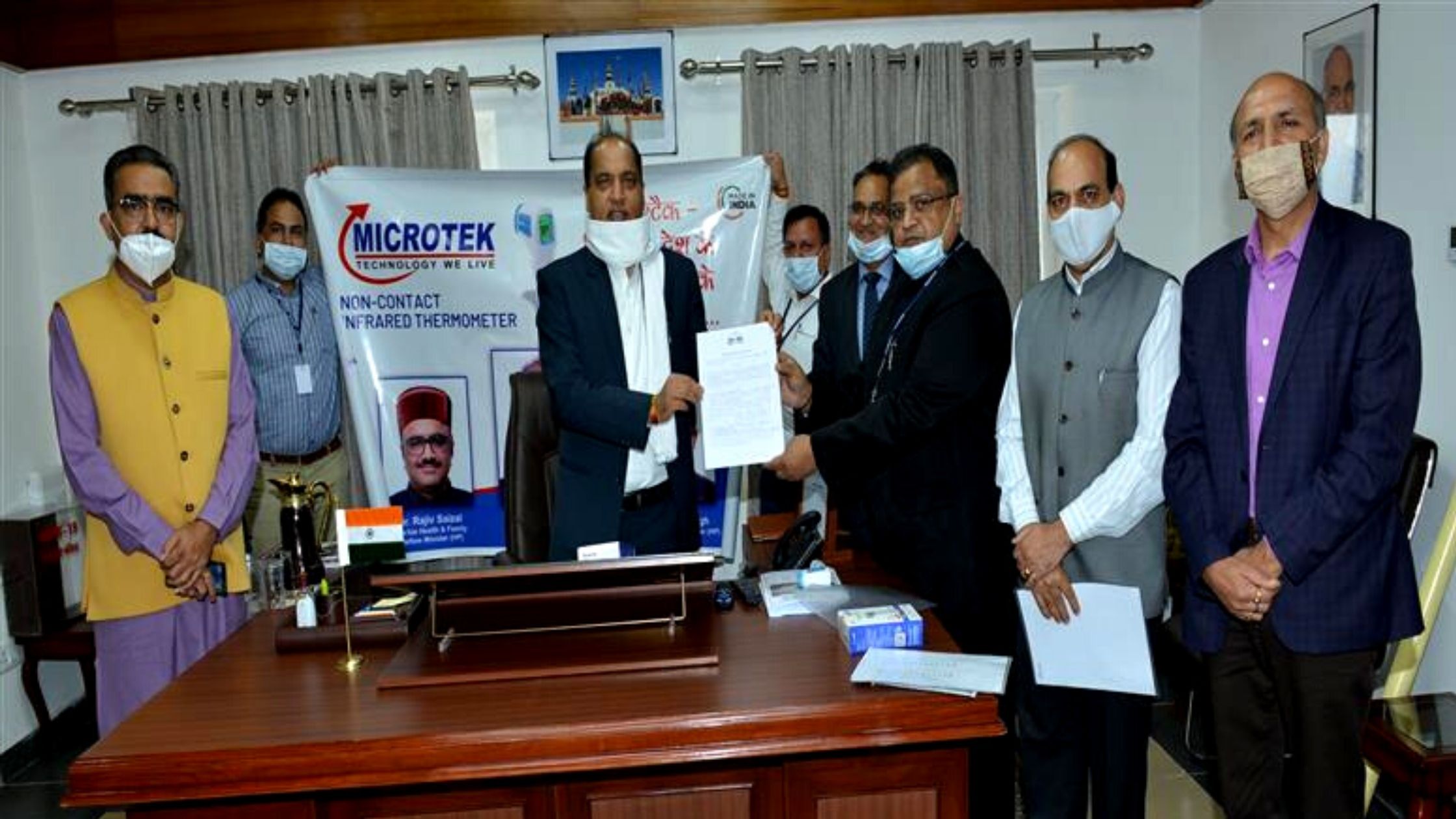 निदेशक, उद्योग हंसराज शर्मा ने प्रदेश सरकार की ओर से और माइक्रोटैक न्यू टैक्नोलाॅजीस प्राइवेट लिमिटेड के अध्यक्ष सुबोध गुप्ता ने प्राइवेट लिमिटेड की ओर से इस समझौता ज्ञापन पर हस्ताक्षर किए। यह इकाई मार्च, 2021 तक बनकर तैयार हो जाएगी और इसमें 450 लोगों को रोजगार प्रदान किया जाएगा। सुबोध गुप्ता ने कंपनी की ओर से मुख्यमंत्री को एक हजार थर्मल थर्मामीटर भी भेंट किए। उद्योग मन्त्री बिक्रम सिंह, मुख्यमंत्री के प्रधान सचिव जेसी शर्मा भी इस अवसर पर उपस्थित थे।