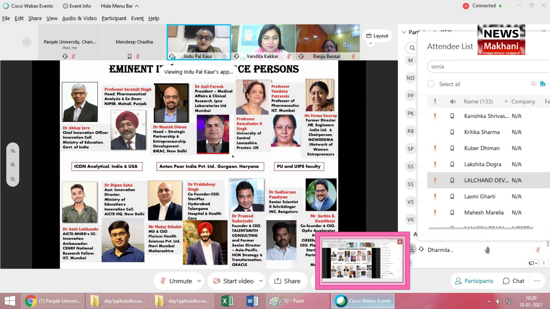 A total of 31 participants were selected for training, hailing from various Colleges/Universities, representing 12 different states of India. The training school started today i.e. January 18, 2021 through Cisco WebEx Events, with an aim to familiarize the participants to the various tasks under “Make in India Mission” and to craft an Entrepreneur culture within an academic Institution through stimulating lectures from leading scientists and academicians who have contributed significantly in their respective domains. The leading topics in the programme shall include: Creating a start-up ecosystem in academic institutions; Networking solutions and opportunities; Funding options, angel investors and government schemes to own and sustain incubation centres, startups at university levels; Success stories, experiential learnings and case studies; Developing leadership skills; Encouraging participants to take up nano based research and Exposing participants to the state of art technologies, softwares, innovations and equipments in the field of pharmacy specially nanopharmaceuticals.