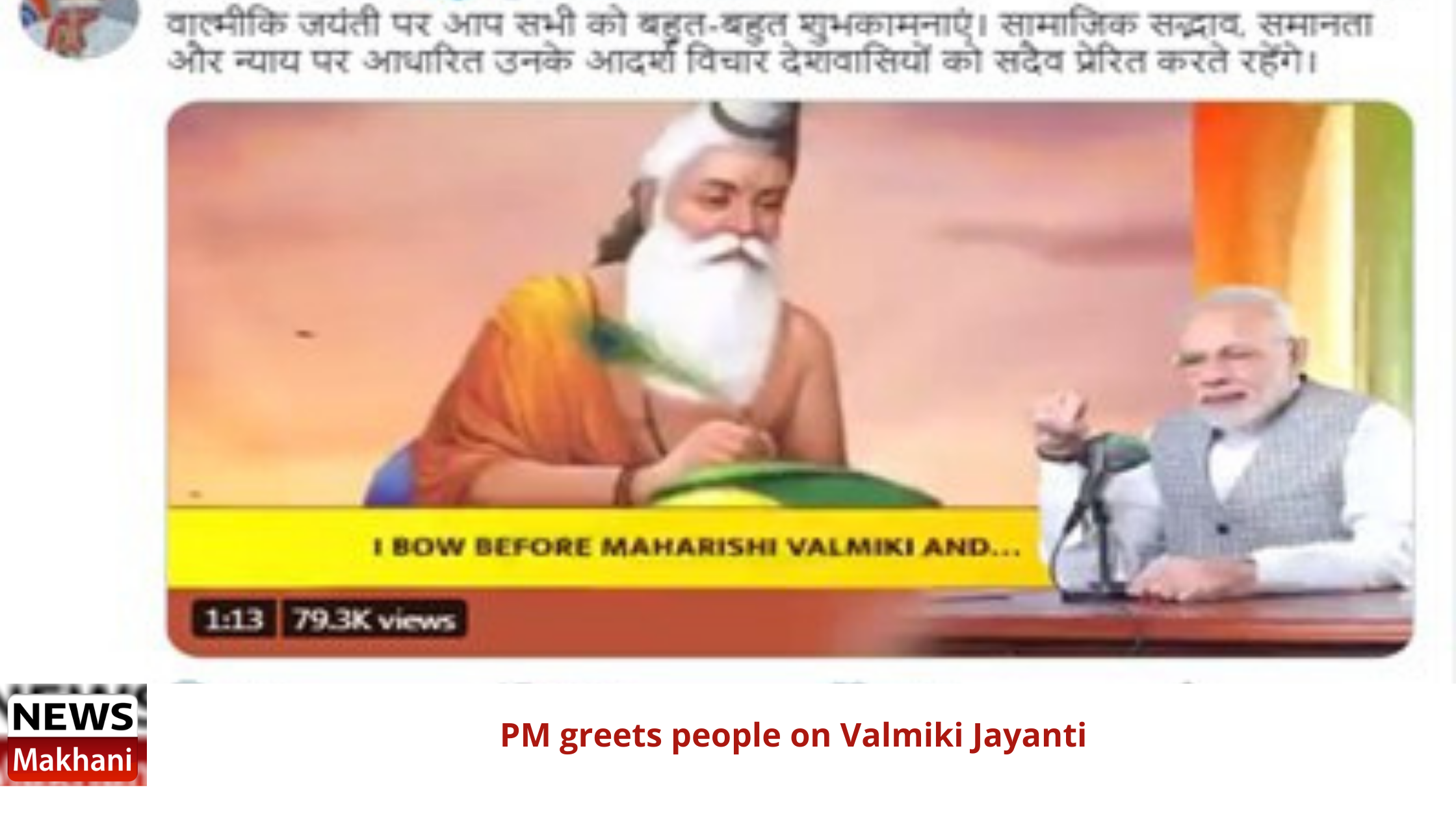 The Prime Minister, Narendra Modi has greeted the people on the occasion of Valmiki Jayanti.