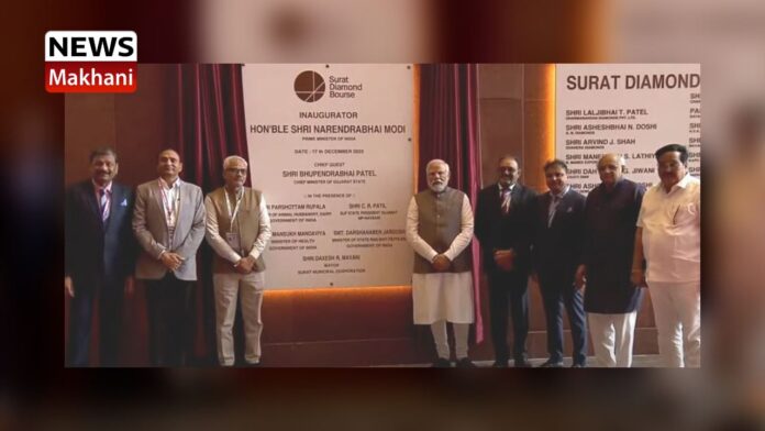 The Prime Minister, Shri Narendra Modi inaugurated the Surat Diamond Bourse today in Surat, Gujarat. Before the program, the Prime Minister also visited Panchtatva Garden, viewed the Green Building of Surat Diamond Bourse & SPINE-4, and signed the visitor booklet. Earlier in the day, the Prime Minister had also inaugurated the new terminal building at Surat Airport.