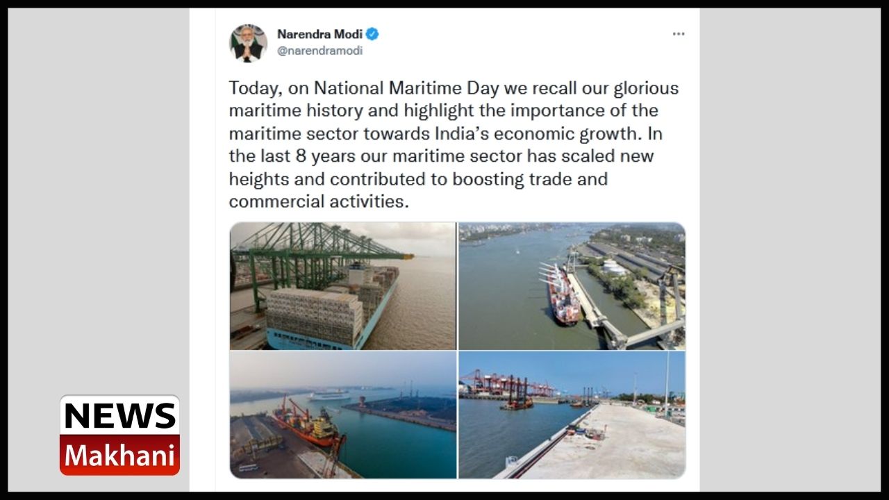 The Prime Minister, Shri Narendra Modi has recalled India’s glorious maritime history on National Maritime Day. Stating importance of maritime sector towards India’s economic growth, he said that in the last 8 years Government of India has focussed on port-led development which is essential for economic growth and building an Aatmanirbhar Bharat. He also emphasized that Government of India is taking an adequate care to ensure the marine eco-system and diversity.