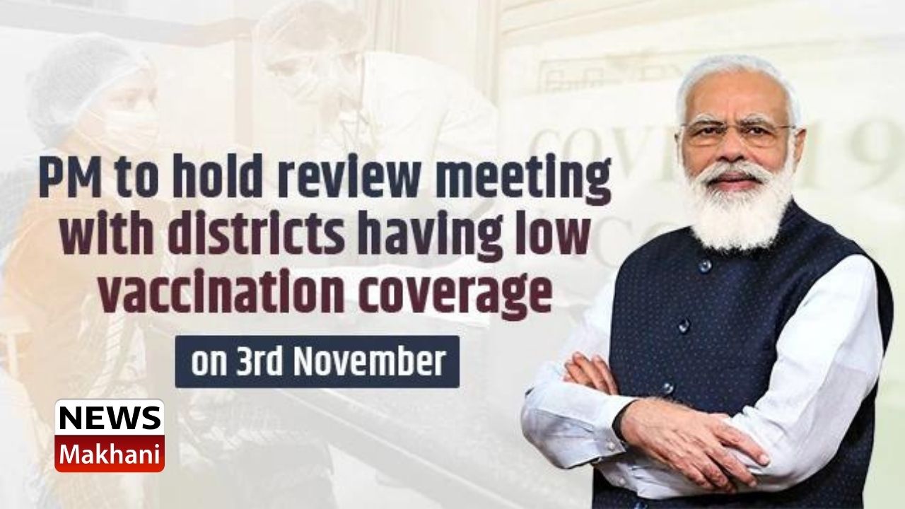 Immediately after returning to the country after attending the G20 Summit and COP26, Prime Minister Shri Narendra Modi will hold a review meeting with districts having low vaccination coverage, on 3rd November at 12 noon via video conferencing.