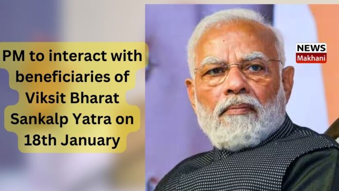 प्रधानमंत्री श्री नरेन्द्र मोदी 18 जनवरी, 2024 को दोपहर 12:30 बजे वीडियो कॉन्फ्रेंसिंग के माध्यम से विकसित भारत संकल्प यात्रा के लाभार्थियों के साथ बातचीत करेंगे। प्रधानमंत्री इस अवसर पर उपस्थित लोगों को भी संबोधित करेंगे।