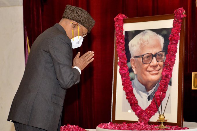 The President of India, Shri Ram Nath Kovind, paid a floral tributes to Shri R. Venkataraman, former President of India, on his birth anniversary at Rashtrapati Bhavan (December 4, 2020). The President and officials of Rashtrapati Bhavan paid respects before a portrait of Shri Venkataraman.