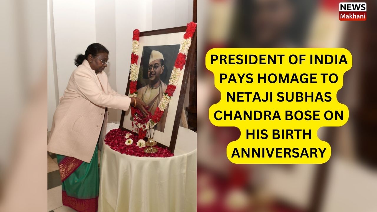 राष्ट्रपति श्रीमती द्रौपदी मुर्मु ने नेताजी सुभाष चंद्र बोस की जयंती पर उन्हें पुष्पांजलि अर्पित की