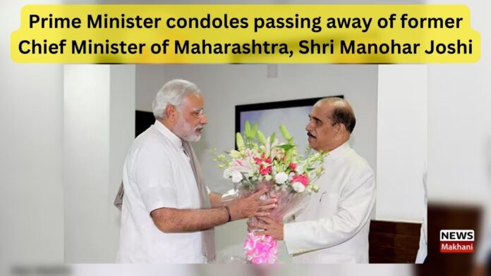 प्रधानमंत्री श्री नरेन्द्र मोदी ने महाराष्ट्र के पूर्व मुख्यमंत्री श्री मनोहर जोशी के निधन पर शोक व्यक्त किया है। श्री जोशी साल 2002 से 2004 तक लोकसभा अध्यक्ष भी रहे थे। प्रधानमंत्री मोदी ने कहा कि महाराष्ट्र के मुख्यमंत्री के रूप में श्री मनोहर जोशी ने राज्य की प्रगति के लिए अथक प्रयास किये थे। प्रधानमंत्री ने यह भी कहा कि श्री जोशी ने लोकसभा अध्यक्ष के रूप में अपने कार्यकाल के दौरान, हमारी संसदीय प्रक्रियाओं को अधिक जीवंत और सहभागी बनाने का प्रयास किया।