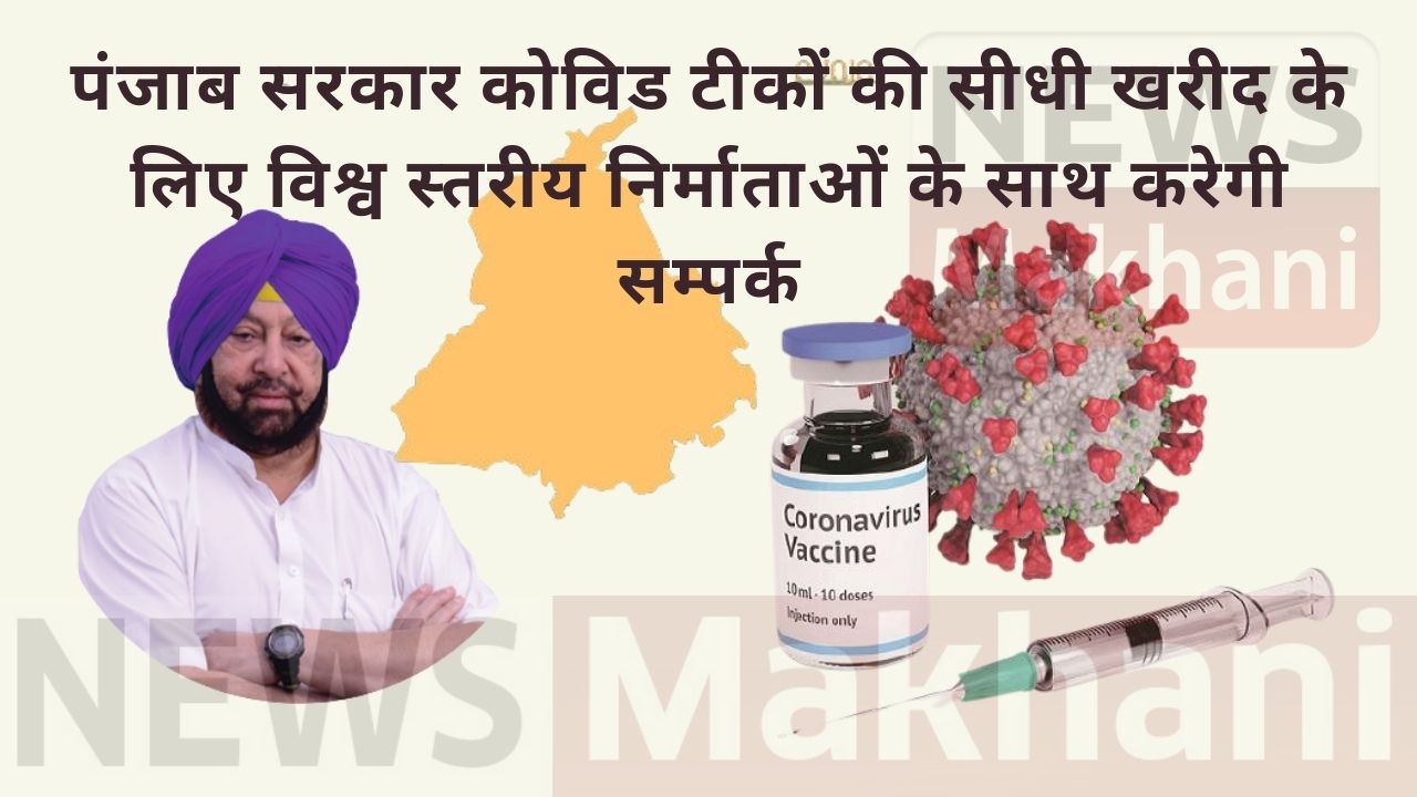 पंजाब के मुख्यमंत्री कैप्टन अमरिन्दर सिंह ने आज स्वास्थ्य विभाग को हिदायत की कि वह राज्य में जल्द टीकाकरण को यकीनी बनाने के लिए सभी संभावित स्रोतों से कोविड के टीकों की खरीद के लिए विश्वव्यापी टैंडर तय करने की संभावनाओं का पता लगाए। उन्होंने ऐलान किया कि राज्य सरकार अलग-अलग कोविड टीकों की सीधी खरीद के लिए सभी टीका निर्माताओं तक पहुँच करेगी जिनमें स्पूतनिक वी, फाईजऱ, मॉडर्ना और जॉनसन एंड जॉनसन शामिल हैं।