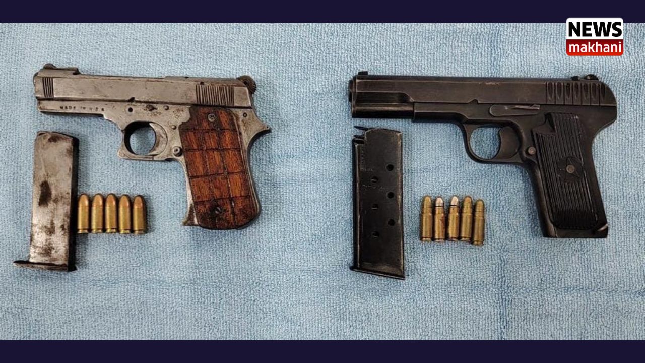 पुलिस टीमों ने उसके कब्ज़े से .30 बोर और .32 बोर की दो पिस्तौलों समेत दो मैगज़ीनें और 10 जीवित कारतूस बरामद किए। इसके अलावा उसके बिना रजिस्ट्रेशन नंबर प्लेट वाले काले रंग के सपलैंडर मोटरसाईकल को भी ज़ब्त किया।