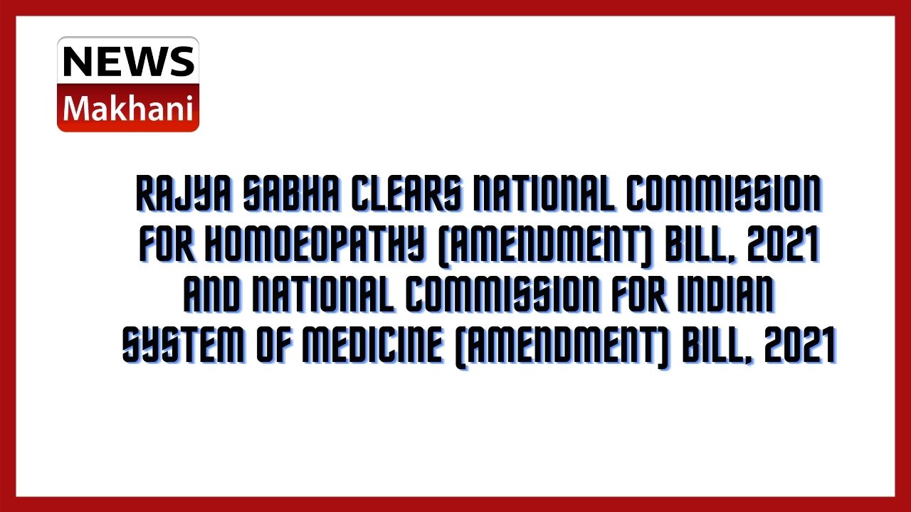 The Rajyasabha on Wednesday passed the National Commission for Homoeopathy (Amendment) Bill, 2021 and the National Commission for Indian System of Medicine (Amendment) Bill, 2021.The two bills were cleared by the Lok Sabha on Tuesday.