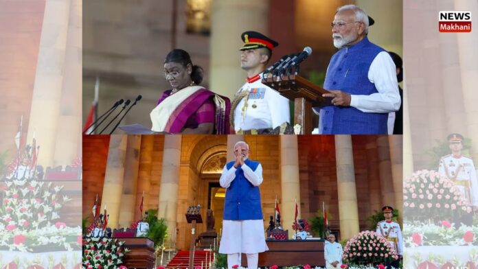 श्री नरेन्द्र मोदी ने आज राष्ट्रपति भवन में आयोजित एक समारोह में लगातार तीसरी बार भारत के प्रधानमंत्री के रूप में शपथ ली। राष्ट्रपति श्रीमती द्रौपदी मुर्मु ने प्रधानमंत्री और उनके मंत्रिमंडलीय सहयोगियों को शपथ दिलाई।