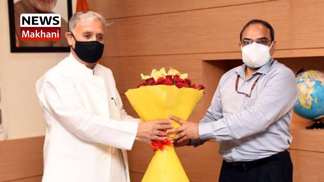 Ministry of Corporate Affairs Secretary Shri Rajesh Verma (right) welcomes Shri Rao Inderjit Singh as Union Minister of State for Ministry of Corporate Affairs.