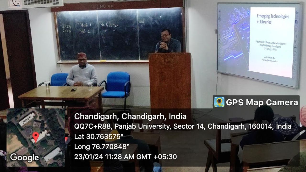 The Department of Library and Information Science, Panjab University, Chandigarh, successfully organized special lectures on “Emerging Technologies in Libraries” and “Features and Functions of KOHA”. The chairperson of the department welcomed the resource person and participants. Dr Pokuri Venkata Rao fellow at Mahatma Gandhi State Institute of Public Administration, Chandigarh, was the resource person. Mr. Mukul Pandey, Research Scholar of the department, introduced the resource person and theme of the lecture.
