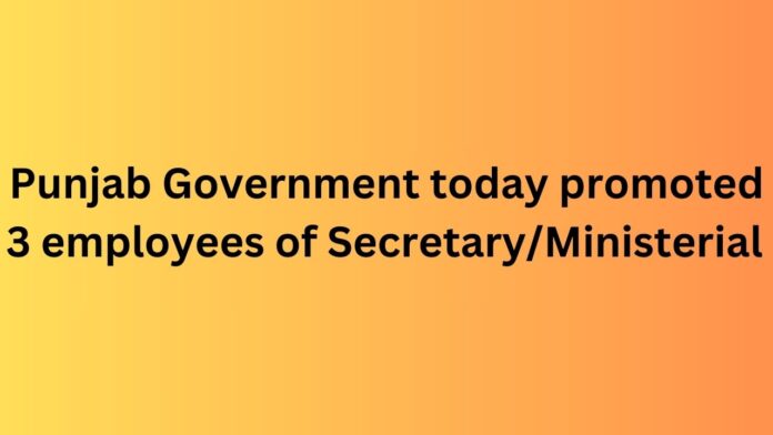 पंजाब सरकार द्वारा आज पंजाब सिविल सचिवालय -1 में तैनात सचिव/मंत्री कैडर के 3 कर्मचारियों को पंजाब सिविल सेवाएं (संशोधित वेतन) नियम, 2021 में उल्लेखित की गई अनुसूची के लेवल 23 (83600-203100) के अंतर्गत विशेष सचिव/मंत्री के रूप में पदोन्नत किया गया है।