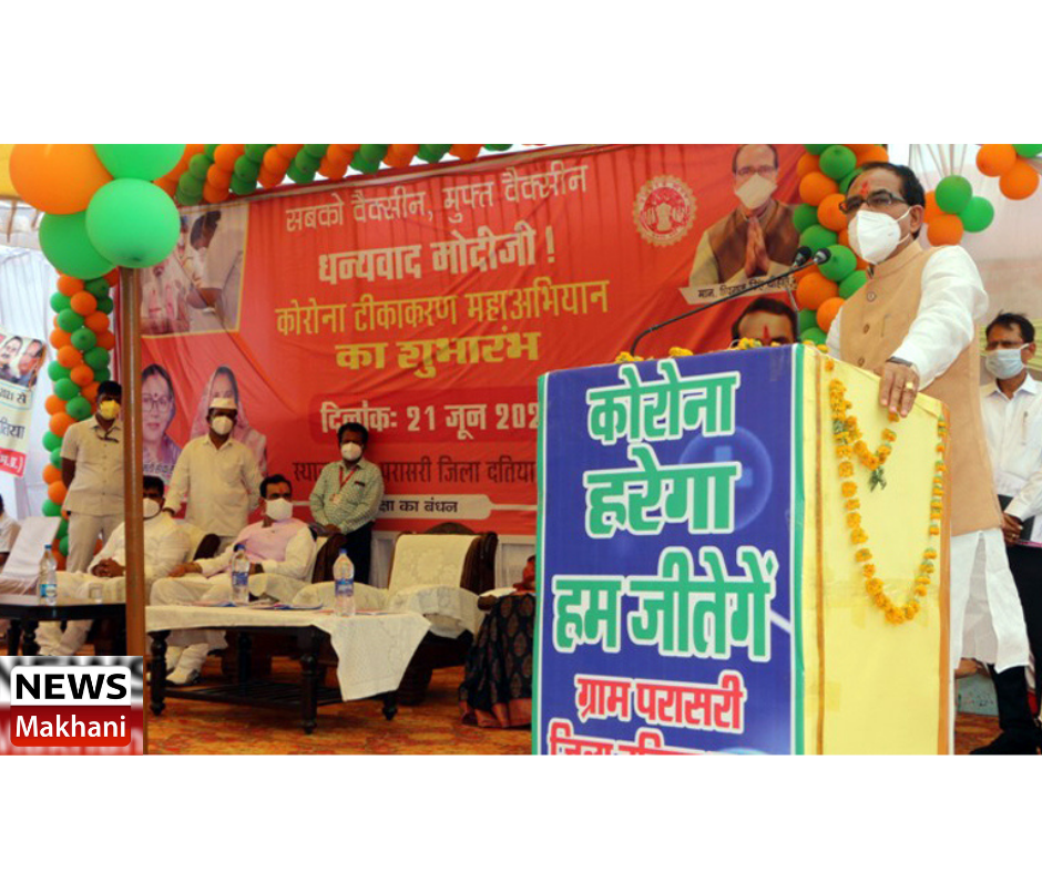 CM Shri Shivraj Singh Chouhan has informed that it is important to get Corona vaccine to defeat the global pandemic Covid and to protect ourselves. He said that after getting vaccinated either we will not get Corona virus at all and even if it affects us, it will not have much effect and the patient will recover soon. Chief Minister Shri Chouhan was addressing people at Parasari village in Datia district while launching the vaccination campaign on International Yoga Day. He started the massive campaign by administering Corona vaccine symbolcially to five people on stage. This massive campaign is being launched simultaneously in the entire state. A target of vaccination of 10 lakh people has been set in the state on June 21. A target has been set to vaccinate 8 thousand people in Datia district today.