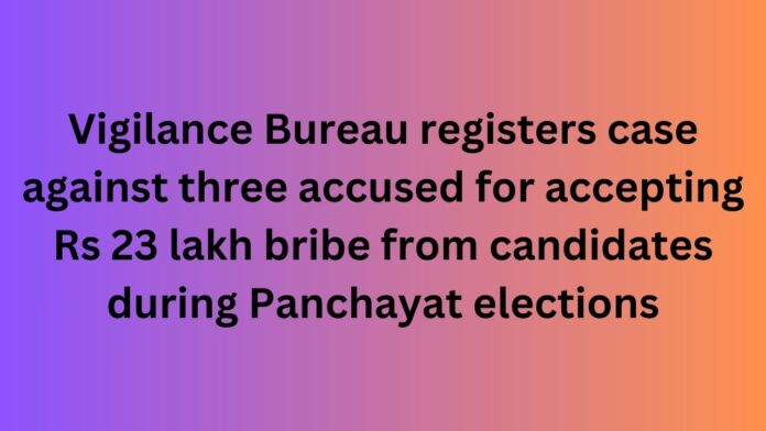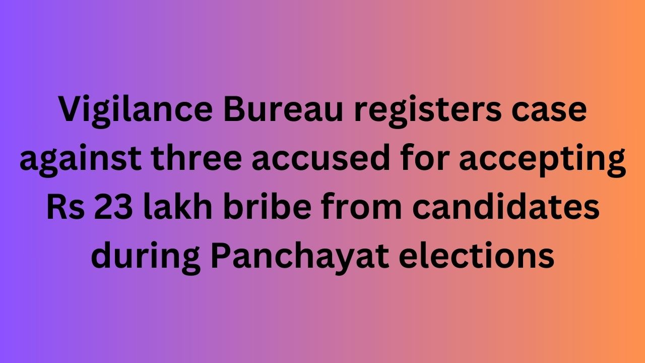 पंजाब विजीलेंस ब्यूरो ने पंचायती चुनावों में सरपंच और पंचायत सदस्यों के नामांकन पत्र रद्द न करने के बदले 23 लाख रुपये रिश्वत लेने और अपने पदों का दुरुपयोग करने के आरोप में गुलाब सिंह, एस.डी.ओ. नहरी विभाग, फिरोजपुर (तत्कालीन रिटर्निंग ऑफिसर, ब्लॉक घल्ल खुर्द), दविंदर सिंह, सब-इंस्पेक्टर कृषि विभाग (तत्कालीन सहायक रिटर्निंग ऑफिसर, ब्लॉक घल्ल खुर्द), और निवेदियम होटल के मालिक राहुल नारंग के खिलाफ भ्रष्टाचार निवारण अधिनियम के तहत मामला दर्ज किया है। इनमें से गुलाब सिंह को पहले ही गिरफ्तार किया जा चुका है और वह जेल में है और होटल मालिक राहुल नारंग को भी गिरफ़्तार कर लिया गया है।