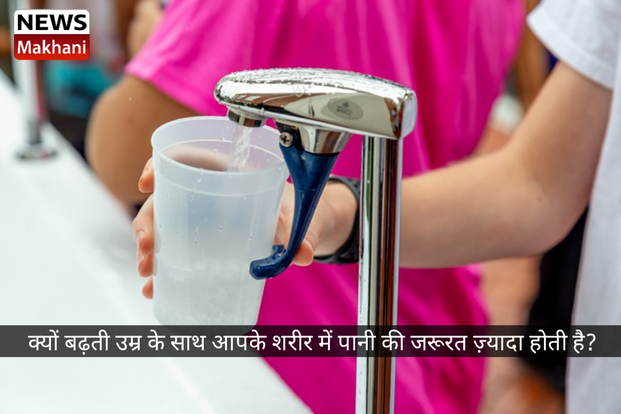 उम्र के अनुसार पर्याप्त मात्रा में पानी पीने से आपके शरीर के तापमान मेंनियंत्रण बना रहता है और अन्य घातक बीमारियों का खतरा टला रहता है।बढ़ती उम्र के साथ हमें रोज़ाना अपने पानी पीने की क्षमता को बढ़ना चाहिएक्योंकि उम्र बढ़ाने के साथ जब आप कोई भी थकने वाला कार्य करते है तोएक आम व्यक्ति के मुकाबले आप ज़्यादा पसीना बहाते है जिससे शरीर मेंपानी की कमी का खतरा बना रहता है।